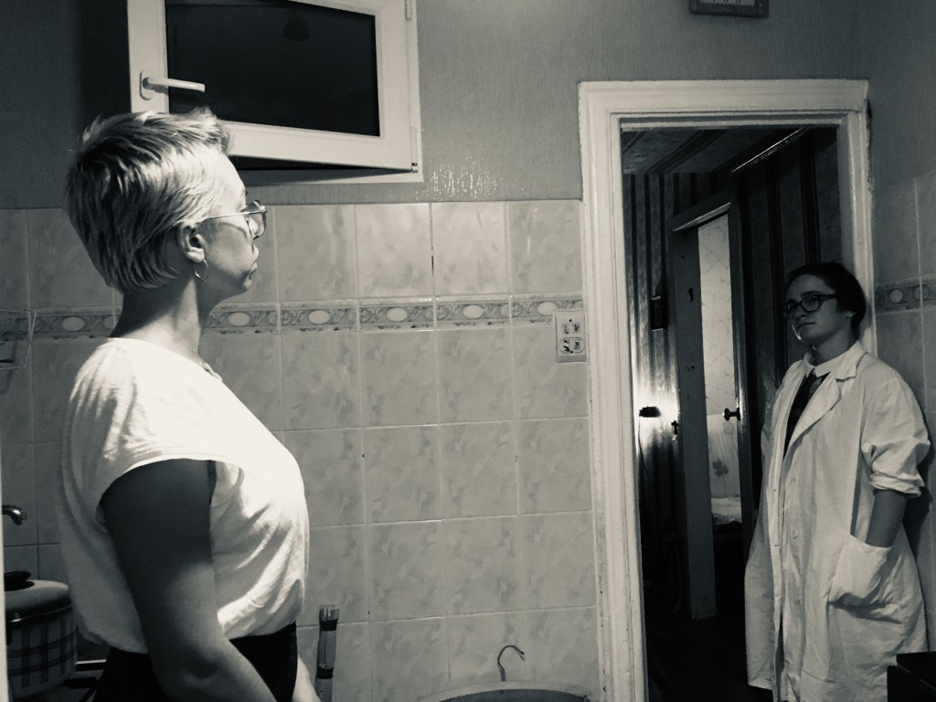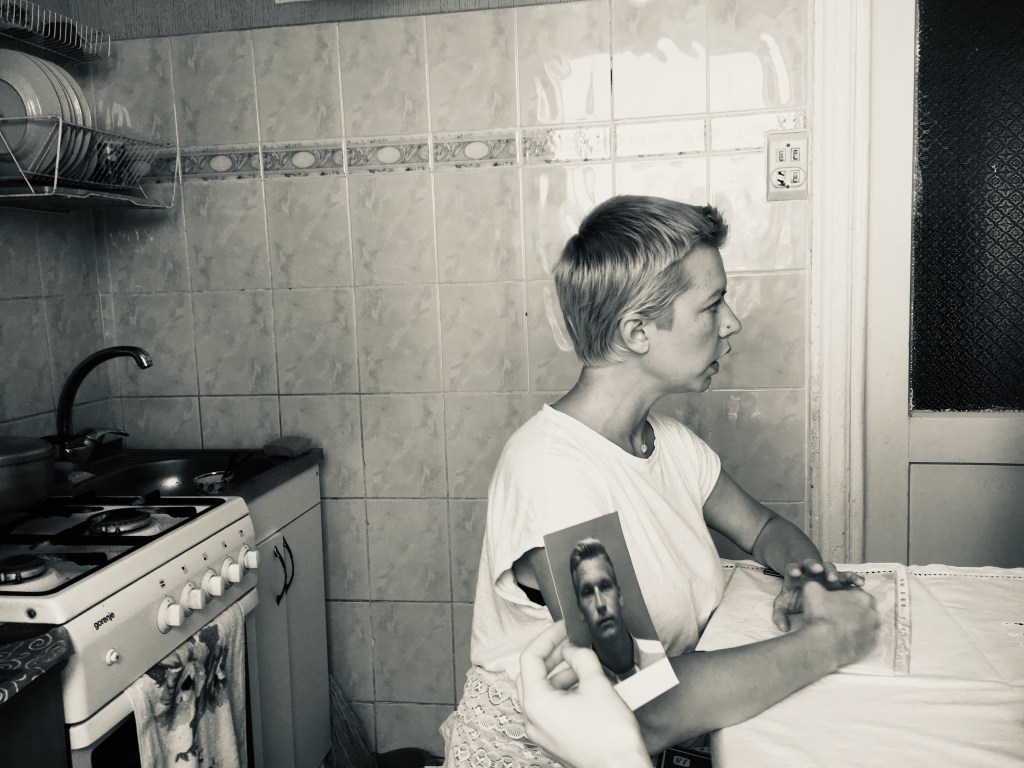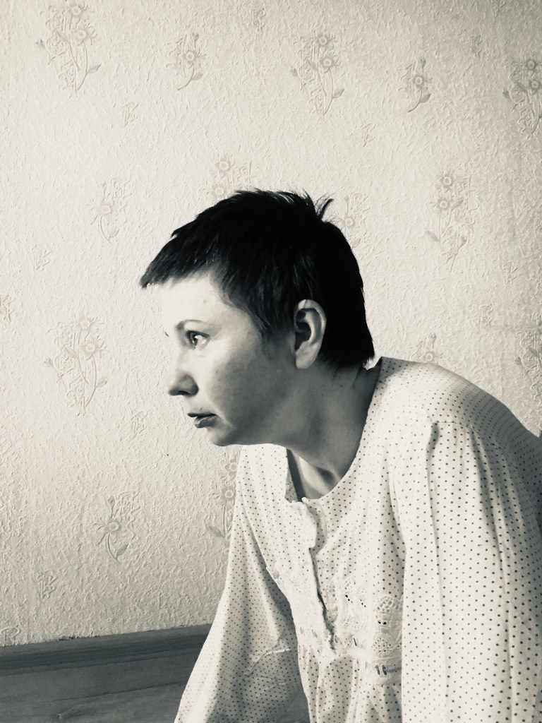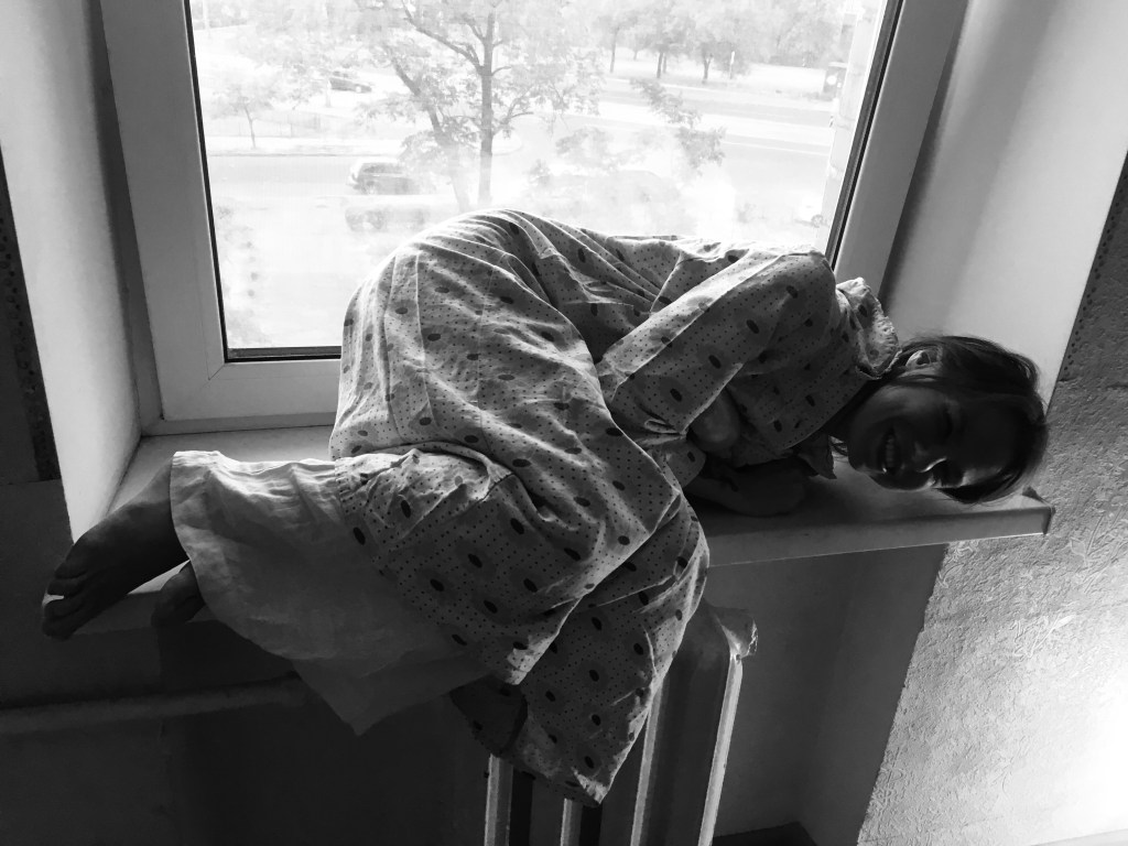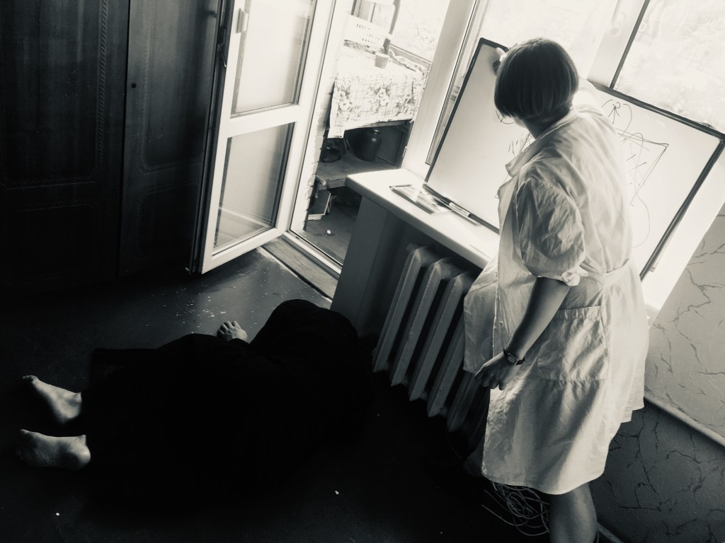 “…Михайлина провела нас до квартири. Там на нас чекала Віта Субота, керівниця відділення організації “Новий початок”. З глибини квартири лунали крики, сміх, плач. Нас попросили залишити телефони і особисті речі, видали одноразові капці і запросили на кухню. Через відчинені двері вітальні я побачила привида, що дивився у куток. Creepy.